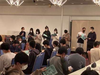 平和学習が始まりました。当初に予定されていた広島のために用意されていた平和宣言を行っています。