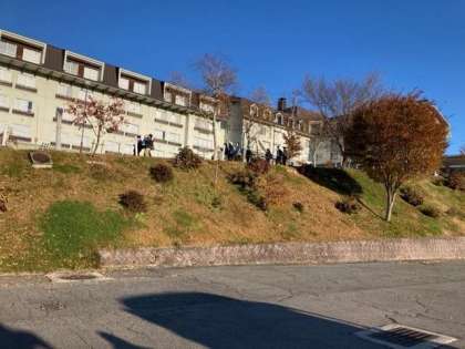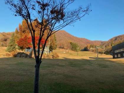 昨日は暗くて見えなかった、レストランから見えるゲレンデの風景です。今日も快晴です。