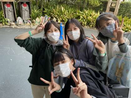 怖い怖い、お化け屋敷を怖がりながらもなんとかやり遂げました!ナイス笑顔!