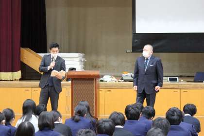途中,教育委員会生徒指導課の主事の先生も交わり講演の手伝いをされていました。その先生は,西ノ京中学の卒業生でしたので感慨深く,生徒の前で朗読されていました。