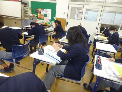 次は2年4組にやってきました。音楽室で音楽の授業です。
