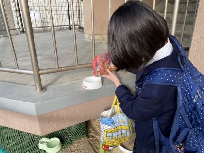 猫のためにエサやり・お水・トイレ掃除としてくれています。人に優しく・猫にも優しく本当に心温かい人柄です。自分達が使う場所が綺麗に整い使いやすい環境というのは、いつも誰かが陰ながらしてくれてるんですね!いつもありがとう!