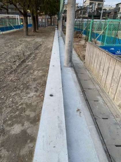 朱雀グラウンドのフェンス工事が順調に進んでいます。写真は,フェンスの支柱を設置するための作業現場です。1つ1つずつ,円柱形できれいに切り抜かれていました。あれだけ固いコンクリートなのに感動です。このような作業工具を編み出した技術家もすごいなぁと感心させられます。