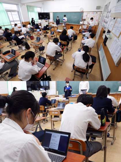 2・3年生はタブレットに入っている議案書データを見ながら学級討議を行っていました。