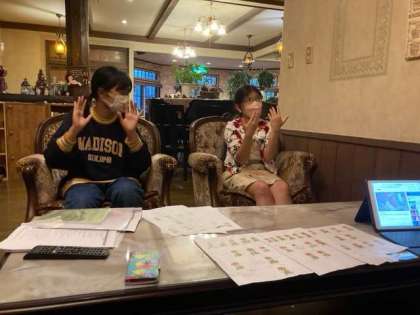 1組は、男子入浴中、女子は明日のレクリエーションに向けて手話の練習をしています。