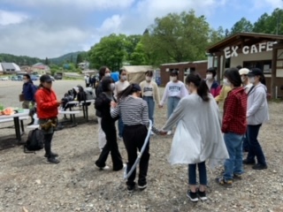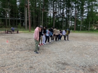 クラスに分かれて活動中、チームビルディングだそうです。
