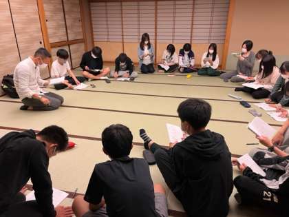 夜レクが終わり、班長会議が行われています。