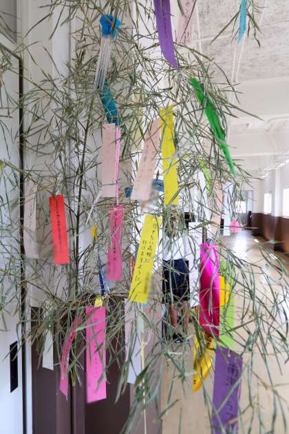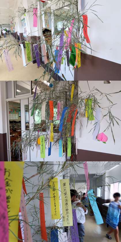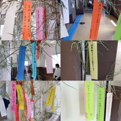 学年のフロアーの笹に「自分の願い」を書いた短冊を飾っています。