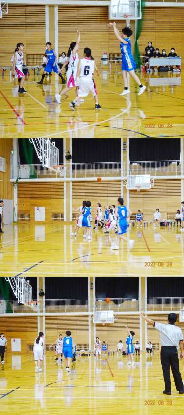 女子バスケットボール部、秋季大会1試合目が、向島秀蓮小中学校体育館を会場として行われ、向島秀蓮小中学校と対戦しました。