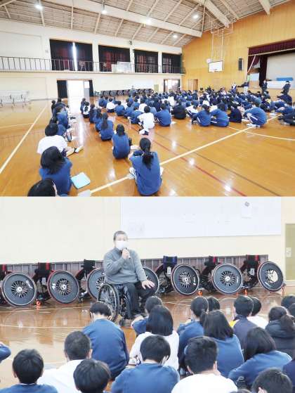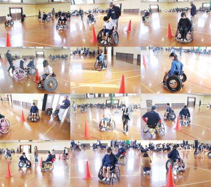 1年生は、5・6限に車椅子バスケットボールを体験しました。