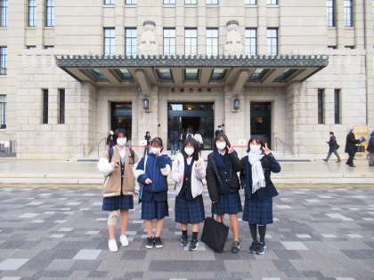 本日、生徒会本部役員のメンバーが「令和4年度 京都市会子ども議場見学」に参加するために、京都市役所に行きました。