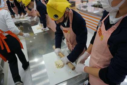 1月26日(木)、1組は校外学習として、「カップヌードルミュージアム」に出かけてきました。皆んながきっと一度は食べたことがあるであろう、カップラーメンの歴史や世界初のインスタントラーメンとなった「チキンラーメン」の生みの親である安藤百福の生涯や「チキンラーメン」の開発に至るまでの経緯を知ることが出来ました。また、カップを自分でデザインし、味や具の組み合わせが自由に出来る、「世界に一つだけのmyカップヌードル」の制作や「チキンラーメン」を小麦粉から手作りするという貴重な体験をしました。