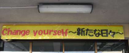Change yourselfとは,あなた自身を変えるという意味です。新たな目標を持ち,日々仲間と切磋琢磨しながら自分自身を成長させて「今までの自分をいい意味で変化させる」というメッセージが込められています。    生徒会