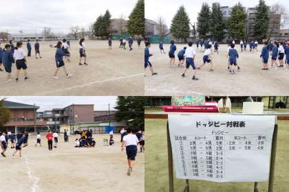 2年生はグラウンドで「ドッジボール」、体育館で「バスケットボール」を行いました。