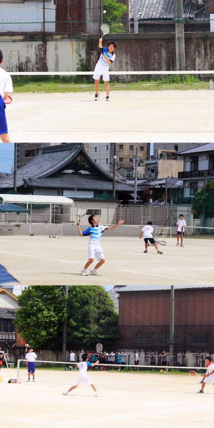 春季大会、男子ソフトテニス部団体戦が松原中学校で行われました。