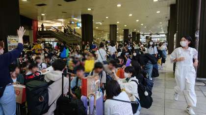 今からトイレに行ってバスに乗る準備をします。すごい人です!