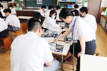 5限に、美術室で3年2組の研究授業(美術)がありました。