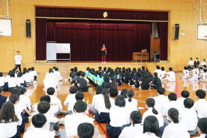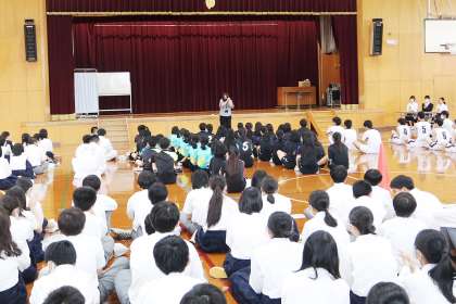 全校生徒が体育館に集まり行いました。