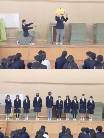 その後、旧生徒会から新生徒会にニシヤンのマスクの引継ぎがありました。