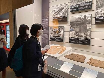原爆資料館に到着し、見学中です。