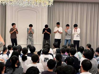 夜レクが始まりました。最初は、爆速拍手対決でした。