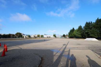 快晴ですが、明け方まで降った雨でグラウンドはぬかるんでいます。