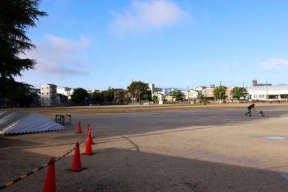 保護者席もまだ乾いていません。気をつけて座ってください。