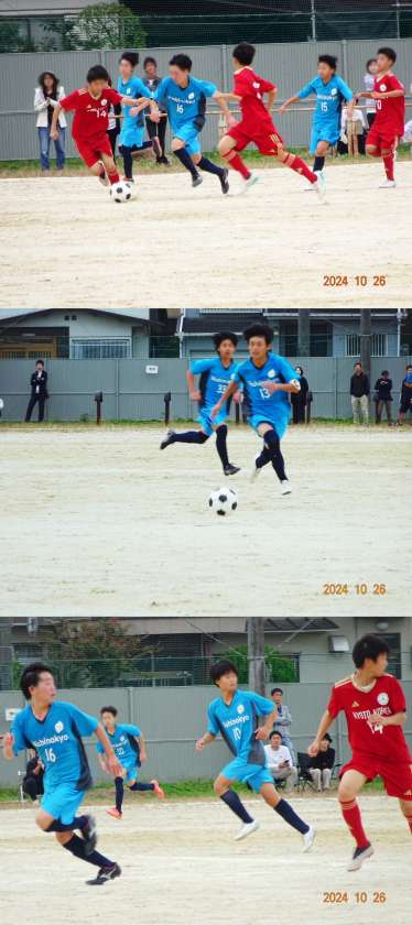 サッカー部秋季大会決勝トーナメント1回戦が、桂中学校で行われました。