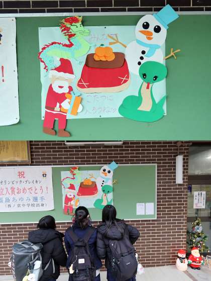 昨日の放課後、12月らしい楽しい掲示板に作り替えてくれました。