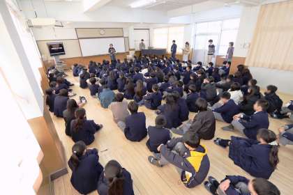 2月6日(木)1年生チャレンジ体験に向け学年集会