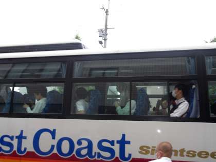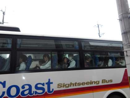 バスに乗って京都駅へ。気をつけて、行ってきてください!