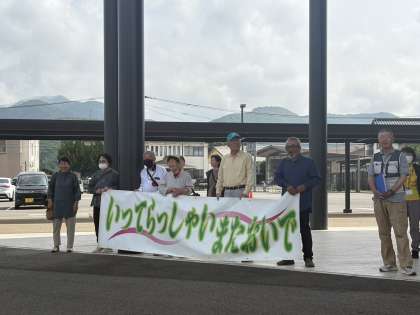 安心院での退村式の様子です。温かい見送りを受けました。安心院の皆様、最後までありがとうございました。