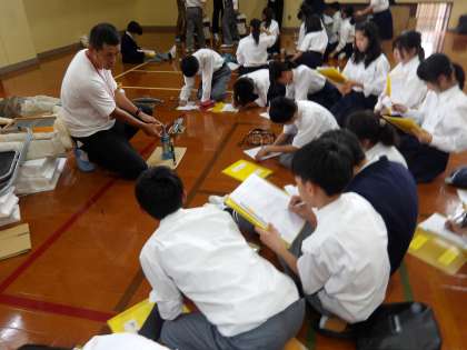 段ボールベッドの組み立てや簡易トイレの使い方、発電機やジャッキの使い方、手作り担架の作り方、使い方等、”地域の一員として自分たちにできることは何か”考えながら、一生懸命取り組むことができました。