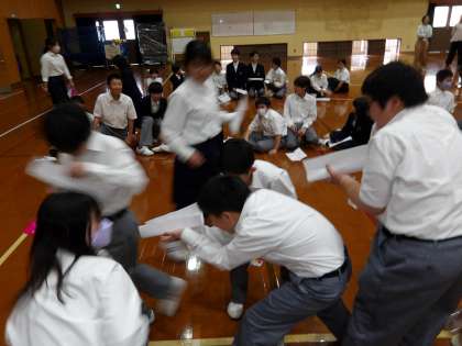 26日の6限に学年集会を行いました。学級旗の発表やレクレーションをして大いに盛り上がり、学年の親睦を深めました。
