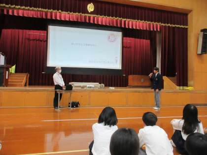 2日の6限に全学年で自転車安全教室を行いました。講師の方に来て頂き、安全に自転車に乗ること、扱うことを学習しました。日々の生活に役立ててください。