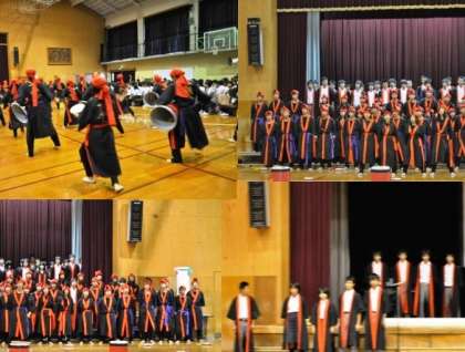 10月2日(火)午後 文化祭の午後の部が行われました。午後は3年生の発表と吹奏楽部の演奏です。3年生は総合的な学習の時間を利用して修学旅行での学習をメインに発表をしました。伝統となったエイサーや群読、三年生の思いを込めた発表でした。