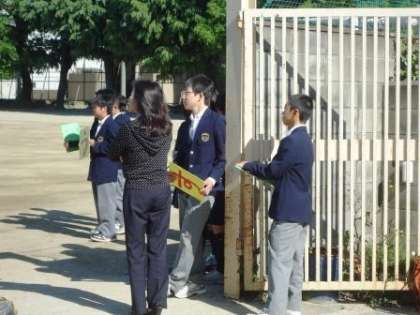 5月7日(火) 連休明けの今日から『朝のあいさつ運動』が実施されました。係りの生徒と教職員全員が正門と西門に立って「おはようございます!」