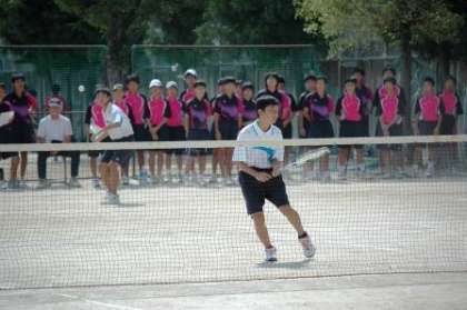 9月22日(日) 男子ソフトテニス部の新人戦ブロック予選が洛南中学校で行われました。対戦相手は京都教育大学附属桃山中学校と高野中学校、洛南中学校です。第1試合の附属桃山とは取りつ取られつのシーソーゲームになっていましたが、西ノ京チームが2−1で勝利をものにしました。続く高野中学校は3−0で勝ち、残るは強豪校洛南中学校です。この試合ではなかなかポイントが取れず、苦戦しました。結果0−3で敗れましたが、ブロック予選2位通過で全市大会に出場が決まりました。次の大会にも全力で取り組んでください。