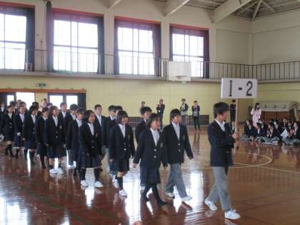 まずは吹奏楽の演奏に合わせて1年生の入場です。生徒会本部の上級生が歓迎ムードを高めます。