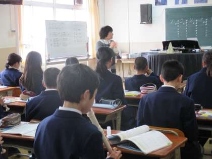 2年4組は音楽。どんどん速くなるリズムに合わせてアルトリコーダーを吹く練習。かなり速いリズムで吹き終わったときには,達成感の大きな歓声があがっていました。