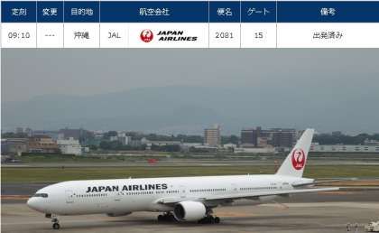 伊丹空港の情報で,定刻どおり9:10に離陸しました。