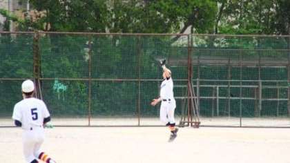 両チームともに0スコアが続く白熱した試合でした。終盤,1点を先取されるも気迫のヒットでチャンスをつくる健闘をしましたが,残念ながら1−0で惜敗しました。