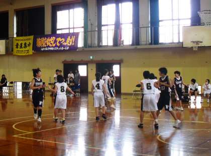 3日午後 女子バスケットの4回戦は高野中学校と対戦。ともに本日2試合目でしたが,ベスト8入りを目指して熱い闘いを繰り広げました。結果は104−19で勝利し,5日に横大路体育館で行われる準々決勝進出を決めました。