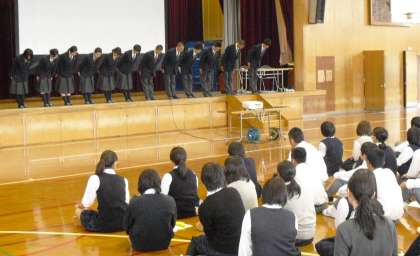 2年生は来週のチャレンジ体験を前に, 5月14日(木)6限,京都府立京都すばる高校生によるマナー講座を行いました。すばる高校の紹介・PRを盛り込みながらビジネス(職業生活)における「ほうれんそう(報告・連絡・相談)」の大切さや,人の話の聞き方としてのアクティブリスニング,あいさつ・返事やお辞儀の仕方などをわかりやすく説明し実演,そして指導していただきました。