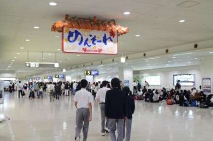 空港で沖縄の雰囲気に歓迎されています。