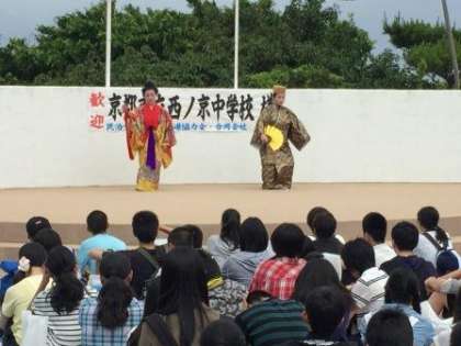 代表生徒のあいさつ,そして歓迎の舞が披露されています。