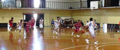続いて行われた男子の相手は樫原中学校。ほぼ互角の接戦でしたが,やや得点を追いかける展開。第4ピリオドで何とかリードして,そのまま61−57で勝利しました。