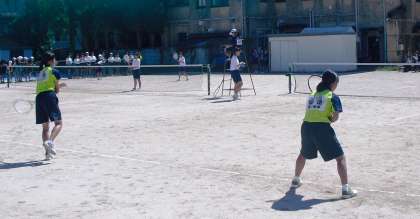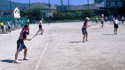 10月3日(土)に女子ソフトテニスの個人戦ブロック予選が教育大附属中学校で行われました。 上級の部に出場した3ペアは1位を含めすべてベスト8入り。1年生の部に出場した4ペアも同様にベスト8入りし,全ペアが全市大会への出場を決めました。