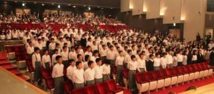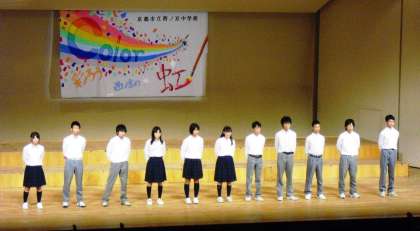 最後は全校生徒で歌う「ふるさと」です。ステージ上の3年生と客席の1・2年生が一体となって,ホールいっぱいに気持ちのこもったコーラスを響かせました。