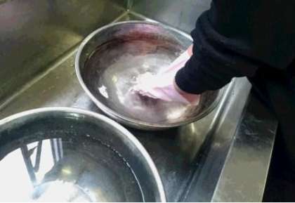 銅駝美術工芸高校を訪問した生徒達は,ハンカチのしぼり染めで藍染めを学びました。